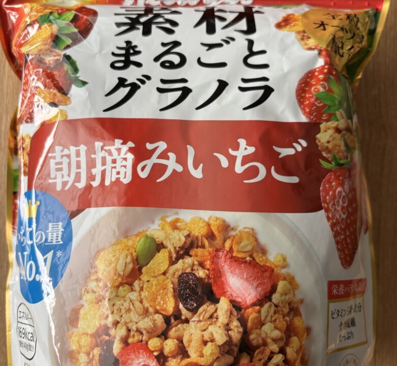 ケロッグの「素材まるごとグラノラ 朝摘みいちご」です。